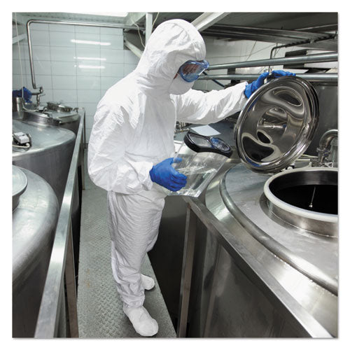 Offering your team comfortable protective clothing is a must, and KleenGuard™ A40 liquid and particle protection disposable shoe covers are a great addition. Each single-use booty measures is 7" high and features an elastic top. Made of breathable, microporous film to keep out debris, non-hazardous liquid chemicals and dry particulates. Apparel Type: Shoe Cover; Material(s): Microporous Film Laminate; Color(s): White; Color Family: Blue.