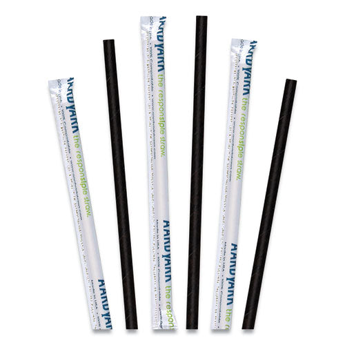Great alternative to plastic straws. These sturdy paper straws arrive individually wrapped for sanitary dispensing and are perfect for serving drinks. Ideal for catering and restaurants. Material(s): Paper; Color(s): Black; Size: 5.75".