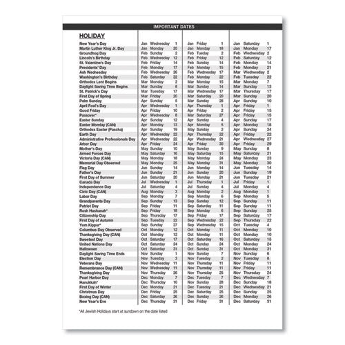 Monthly page spread enables you to see your entire month's schedule. Each page features a note section and a two-month reference calendar view for long-term planning. Includes a double-sided storage pocket. Strong wirebound core with an embossed black simulated-leather cover withstands constant use throughout the year. Made entirely of recycled materials. Size: 11 x 8.5; Page Color/Theme: White/Blue; Appointment Ruling: Open Scheduling; Edition Year: 2020-2021.