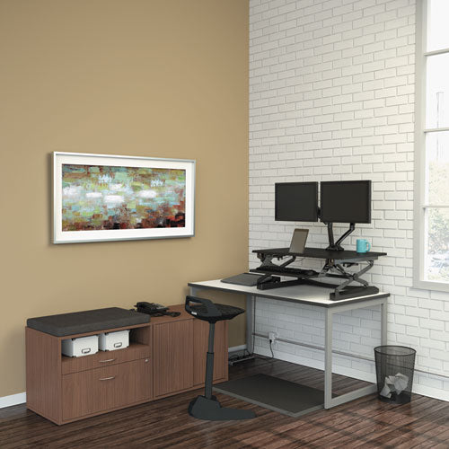 Advanced active ergonomics goes from sitting to standing with ease. Pivoting angled column moves with the body for constant alignment. Perch or lean when you wish to perform fast tasks or fully sit down when you wish to concentrate on more complicated tasks. Goes from sitting height to standing height. Perfect for use with height adjustable workstations. Auto return swivel seat moves with the body as you twist, and returns to front automatically when you get up. Dual integrated height adjustment levers for quick adjustments with either hand. Wide boomerang base for stability when leaning far forward. Recommended Applications: General Office & Task; Conference, Training & Meeting; Seat Color: Black; Back Color: Black; Color Family: Black.