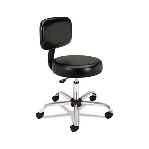 Solid construction stands up to heavy use. Antimicrobial upholstery wipes clean with ease and protects the stool from the growth of germs. Comfort and versatility. Seat: 16" Dia. Overall Height: 31 1/2" to 38". Recommended Applications: Healthcare; Seat Color: Black; Back Color: Black; Color Family: Black.