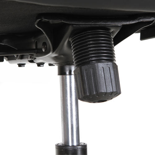 Intelligent ergonomic design fits most any user. Flip-back height adjustable arms neatly pivot backward and out of the way when not needed. Synchro function tilts back in a 2:1 ratio to the seat for a more natural reclining position. Integrated adjustable lumbar support bar for ideal back posture. Breathable mesh back and generously padded leather seat for all day comfort. Waterfall seat edge reduces pressure points at the back of the knee. Recommended Applications: General Office & Task; Conference, Training & Meeting; Executive & Management; Seat Color: Black; Back Color: Black; Color Family: Black.