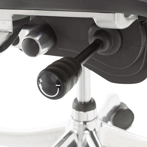 A high-tech aesthetic chair with premium ergonomic features. Synchro-Tilt mechanism offers customized support. Breathable elastic polyester mesh seat and back. Waterfall seat reduces pressure at the back of your knees for improved circulation. Easy reach seat levers for height and back adjustment. Soft arms are adjustable up and down front to back and at angles. Five-star base with casters for easy mobility. Recommended Applications: Executive & Management; Seat Color: Black; Back Color: Black; Color Family: Black.