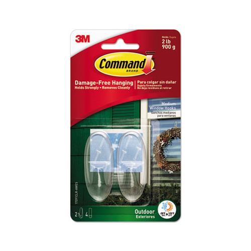 Perfect for hanging wreaths, signs, thermometers, lights, or other seasonal decorations directly. Use them on the patio, deck or on the side of the house or other structures. Specially designed to hold strongly outdoors - they are water resistant, UV resistant, and can handle temperature extremes from -20 degrees F to 125 degrees F! Remove cleanly - with no marks or sticky residue - so you can use them over and over again. Medium—Clear hooks and strips blend in seamlessly. Hanger/Hook Type: Hook; Width: 1"; Depth: 1"; Height: 2 3/8".