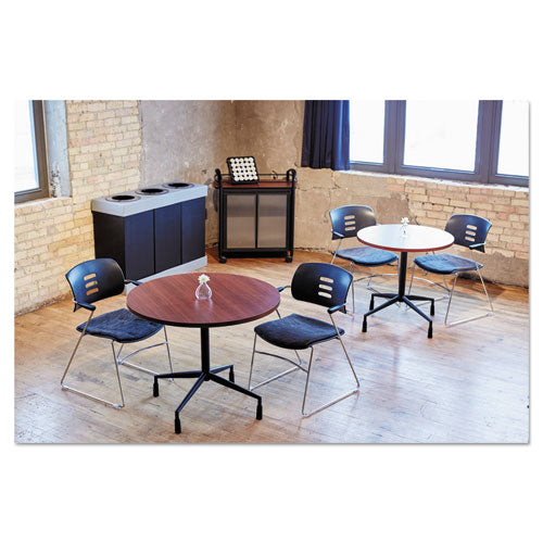 100% recyclable receptacle keeps all recycling and waste needs labeled, sorted and contained under one lid. 28-gallon bins are moisture-resistant and impact-resistant. Decals keep bins neat and organized. Decals included are Paper, Plastic, Cans and Waste. Includes Three Bins. Waste Receptacle Type: Indoor Recycling Bin; Material(s): Polyethylene; Application: Indoor All-Purpose Waste Disposal; Recycling Aluminum Cans; Recycling Plastic Bottles; Capacity (Volume): 84 gal.