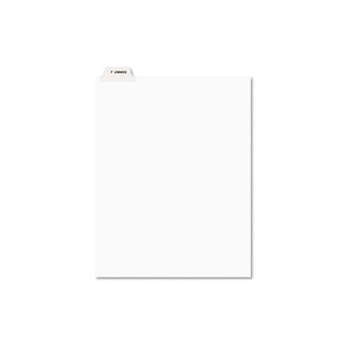 Rip Proof™ reinforced tabs printed on both sides with exhibit letter. Easy-to-read Helvetica bold type stands out. Unpunched for flexibility in binding. Index Divider Style: Legal Alpha; Index Divider Size: 11 x 8.5; Punched/Unpunched: Unpunched; For Use With: Comb Binding Systems.