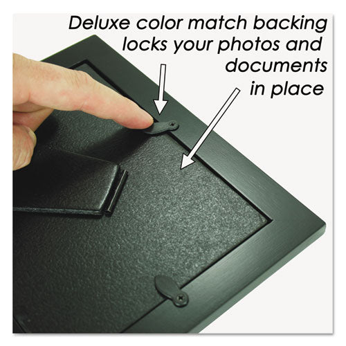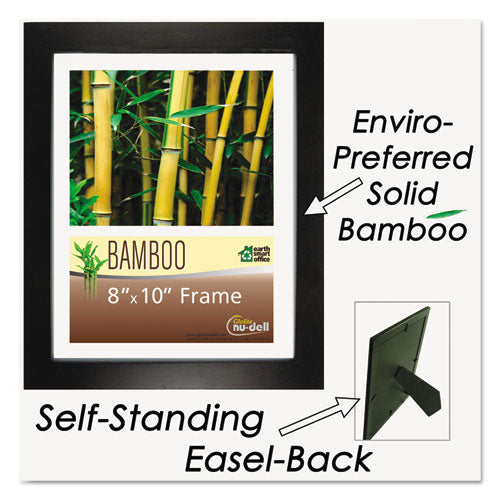 Strong, quality-constructed bamboo desktop picture frame rivals the strength of hardwood. Satin finish frame, made from sustainable and recyclable bamboo, displays photos, awards, certificates, documents and more. Deluxe color-match backing locks your photos and documents in place. Sturdy, no slip easel prevents sliding when displayed on desks, counters and shelves in landscape or portrait position. Frame Type: Photo; Frame Material: Bamboo; Frame Color: Black; Color Family: Black.