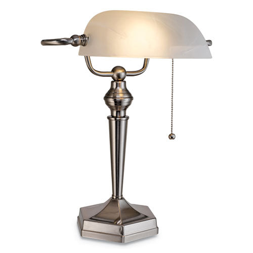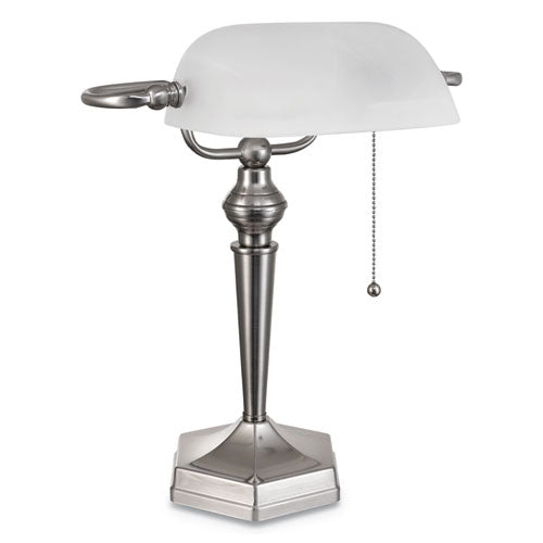 Banker's Lamp, Post Neck, 10"w X 13.38"d X 16"h, Brushed Nickel
