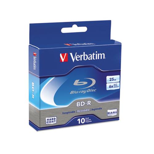 Designed to store large HD video and audio files, Blu-Ray Recordable (BD-R) discs can handle up to 1080p resolution video and multiple audio formats. BD-R discs have a storage capacity of 25GB, allowing you to use fewer discs while backing up or duplicating HD digital recordings. All Verbatim BD-R media features HardCoat™ to protect against scratches, fingerprints and dust build-up, reducing playback and recording errors. These are one-time record discs, ensuring that your video, music or other information will not be erased. BD-R’s are ideal for recording HDTV programs or backing up your music collection. Disk Type: BD-R; Capacity (HD Video): 120 min; Recordable Format: “Write Once” format—may not be altered once data is written to the disc.; Capacity Range (Data): 25 GB.