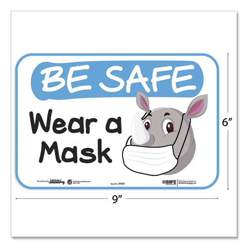 Besafe Messaging Education Wall Signs, 9 X 6, "be Safe, Wear A Mask", Rhinoceros, 3-pack