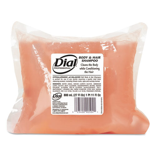 Dial® Hair + Body Wash has a moisture rich, dual-action formula to leave your skin and hair looking healthy and feeling hydrated. Clean Rinse technology; moisturizing formula is hypoallergenic and dermatologist-tested. For Use with Dial® Professional 800 mL Manual Liquid Dispenser. Soap Type: Liquid; Application: Body; Hair; Capacity (Volume): 800 mL; Scent: Peach.