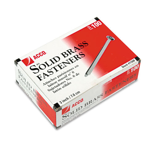 Brass Prong Paper Fasteners, #8, 3" Capacity, Brass, 100-box