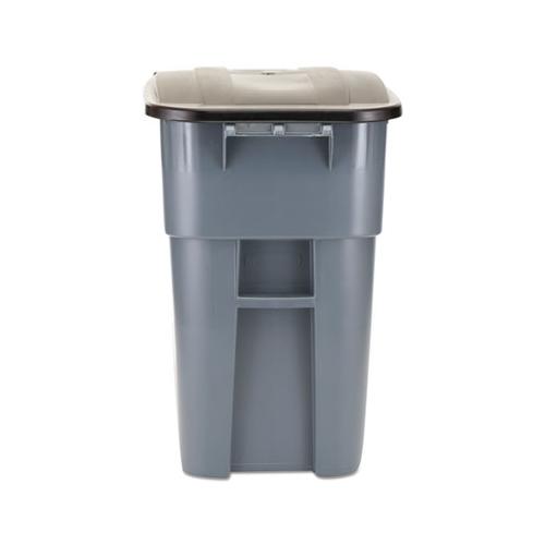 The Rubbermaid Commercial BRUTE Recycling Roll-Out Trash Can with Lid offers easy mobility for general refuse collection and material handling. These trash cans include heavy-duty, 8-inch wheels that afford easy mobility, even over steps or curbing. The attached hinged lid fits tightly, swings back, and locks in place. Tough BRUTE trash can construction for a long life. The garbage can features rounded corners and smooth contours for easy cleaning. The molded-in axle retainer adds strength. Waste Receptacle Type: Outdoor All-Purpose Waste Bin; Material(s): Molded Plastic; Application: Outdoor All-Purpose Waste Disposal; Capacity (Volume): 50 gal.