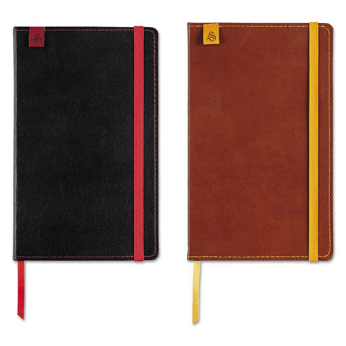 Classic colors updated with smart contrasting top stitching, ribbon marker and elastic closure makes these a favorite companion. Designed from the inside out with just the right amount of structure to keep organized. Genuine bonded leather wrapped cover. Book/Pad Binding Type: Sewn; Book/Pad Binding Edge: Side; Book/Pad Sheet Size: 8.25 x 5.13; Book/Pad Subjects/Sections: 1.