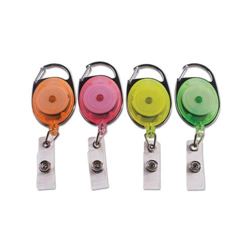 Carabiner-style Retractable Id Card Reel, 30" Extension, Assorted Neon, 20-pack