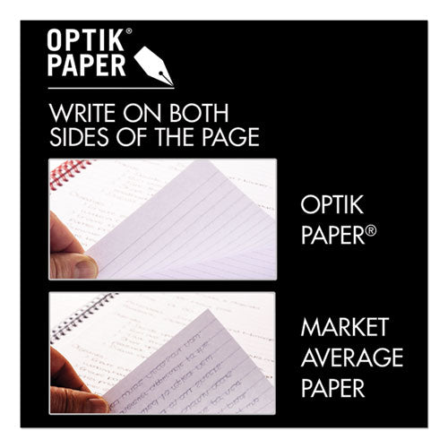 High-quality, 24-lb. white woven paper, ensuring both sides can be used. Durable, laminated cover easily wipes clean, making this notebook ideal for permanent notetaking. Red ribbon bookmark. Optik Paper™ reduces ink bleed. Book/Pad Binding Type: Casebound; Book/Pad Binding Edge: Side; Book/Pad Sheet Size: 11.75 x 8.25; Book/Pad Subjects/Sections: 1.