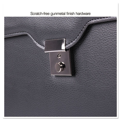 Features a dual zippered front section that provides easy access from the outside or top to files. Holds up to 17.3" screen laptops (16.5" wide). Exterior side pockets help organization. The added webbing on flap prolongs the life of the case. Durable, locking telescopic handle. Combination lock. For Use With: Laptops; Color(s): Black; Color Family: Black; Material(s): Koskin.