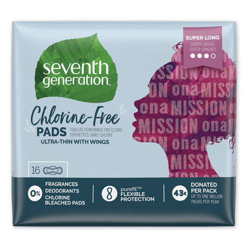 Chlorine-free Ultra Thin Pads With Wings, Super Long, 16-pack, 6 Packs-carton