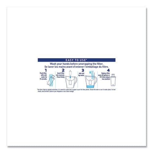 Drink healthier, great tasting tap water with this BPA free Brita five cup water pitcher. With the Advanced filter technology, Brita cuts the taste and odor of chlorine to deliver great tasting water, and is certified to reduce copper, cadmium and mercury impurities, which can adversely affect your health over time. The color of this white Brita pitcher adds personality to your kitchen while the space efficient design makes it easy to fit almost anywhere. It is ergonomically design with a flip top lid that makes refilling a breeze and an electronic filter indicator that lets you know when it is time to change the Brita replacement filter. This small water pitcher comes with one water filter, which should be changed every 40 gallons or about two months for best results. Ideal for use in offices, schools, daycare centers, restaurants, hotels and other commercial facilities. Start drinking healthier, great tasting water with Brita today. Capacity (Volume): 40 oz; Number of Cups: 5; Color(s): Clear; Material(s): Plastic.
