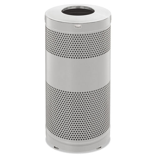 The heavy-duty Classics Open Top Decorative Waste Container has a perforated steel design for a clean and modern appearance. It’s made from heavy-gauge, fire-safe steel. Leak-proof rigid plastic liner included to contain liquids and keep the surrounding area clean. Adjustable leg levelers create stability on uneven surfaces, giving you the ability to position containers in optimal areas despite the terrain. Discreet retainer bands hold bag liners securely in place and out of sight. The lid is fastened to the receptacle with a cable, making waste collection faster and more convenient. This container is a smart choice for high traffic areas and can be used both outdoors and indoors. Waste Receptacle Type: Indoor/Outdoor All-Purpose Waste Bin; Material(s): Steel; Application: Indoor/Outdoor All-Purpose Waste Disposal; Capacity (Volume): 51 gal.