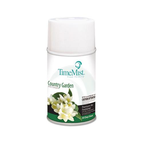 Complex high quality fragrance with essential oils and dual odor counteracts ensuring 30 day long lasting experience. For use with TimeMist® Metered Aerosol Dispensers (sold separately). Scent: Country Garden; Physical Form: Liquid; Application: Automatic Odor Control; Capacity (Volume): 6.6 oz.