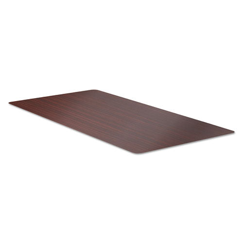 Wear-resistant, 3/4" thick melamine top with vinyl T-mold edge. Melamine sealed underside helps prevent moisture absorption. Full perimeter steel skirt support with plastic corners to protect surface when stacking. 1" diameter, heavy gauge steel legs with heavy-duty foot caps to protect floors. Heavy-duty leg supports and gravity leg lock for secure set-up. Folds to 2-1/2" for compact storage. Top Color: Mahogany; Color Family: Mahogany; Base Color: Brown; Top Shape: Rectangular.