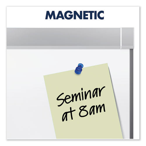 The DuraMax® porcelain Prestige® 2 whiteboard is exceptionally durable and will not ghost, stain, scratch or dent. The surface of this whiteboard is also magnetic so that it can double as a magnetic bulletin board. Board is available in multiple sizes and frame colors and offers an ultra-smooth writing platform. Marker tray and easy-to-install pass-through mounting hardware included. Quartet® Prestige 2 Connects™ accessories, sold separately, are also compatible with the Prestige 2 Connects™ board. Minimal cleaning of board surface is recommended. Board Type: Magnetic Dry Erase; Board Width: 48"; Board Height: 36"; Surface Material: DuraMax® Porcelain.