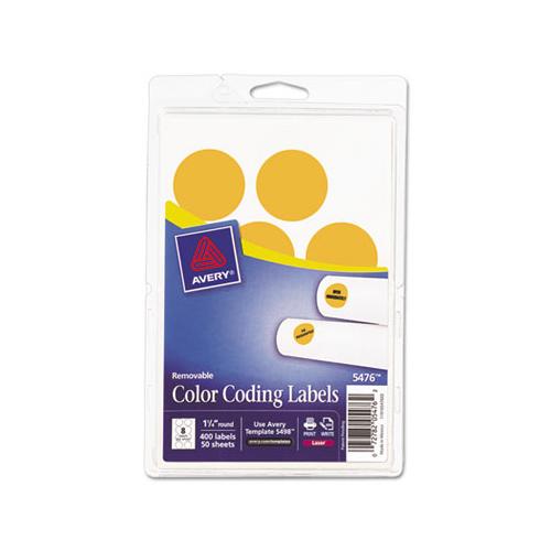 Printable Self-adhesive Removable Color-coding Labels, 1.25" Dia., Neon Orange, 8-sheet, 50 Sheets-pack, (5476)