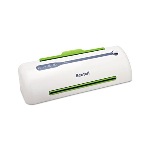 Laminates items up to 9" and comes with patented Never Jam technology that prevents pouch jams and damage to items. Warms up in five minutes and laminates at 15" per minute. Includes built-in loading-tray, cord storage and auto shut-off. Laminator Supply Type: Hot; Use Rating: Frequent; Electric/Manual/Battery: Electric; Maximum Document Thickness: 5 mil.