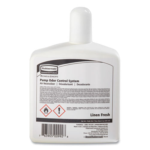 Pump's highly effective, water-based refills neutralize odors without the use of propellants. Effective in areas up to 6,000 cubic ft. Countertop or wall mounting capabilities. Scent: Linen Fresh; Physical Form: Liquid; Application: Odor Control; Capacity (Volume): 8 oz.