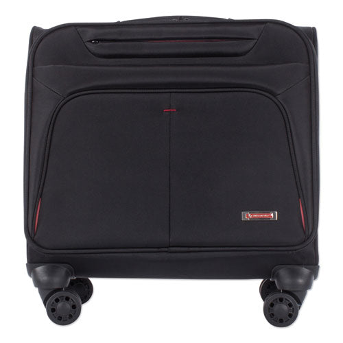 The Purpose Rolling Case offers a 15.6" laptop compartment with quick front access pockets and organizational sections. RFID patented technology ensures security of all personal information. Made of ballistic nylon, the case is a stylish and durable tank on 360 degree spinner wheels. For Use With: Laptops; Color(s): Black; Color Family: Black; Material(s): Polyester.