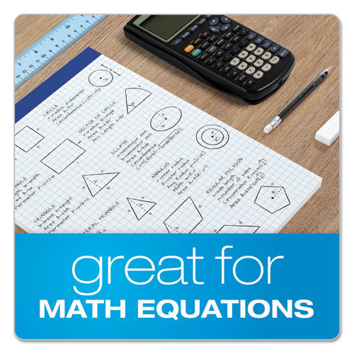 Twice the number of sheets as a standard legal pad. Graph-ruled. Sturdy back for added support. Microperforated for easy sheet removal. White paper with blue ink. Book/Pad Binding Type: Heavy-Duty Stapled; Book/Pad Binding Edge: Top; Book/Pad Sheet Size: 8.5 x 11.75; Book/Pad Subjects/Sections: 1.