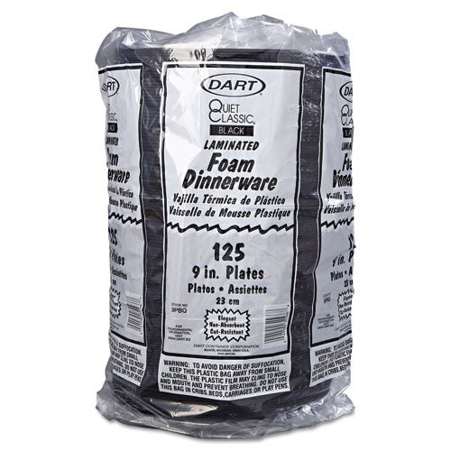 Quiet Classic Laminated Foam Dinnerware, Plate, 9" Dia, Black, 125-pk, 4 Pks-ctn